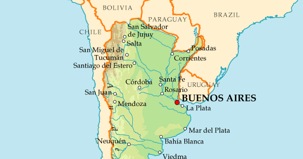 Slika lijevo prikazuje položaj Argentine na karti u odnosu na susjedne države.